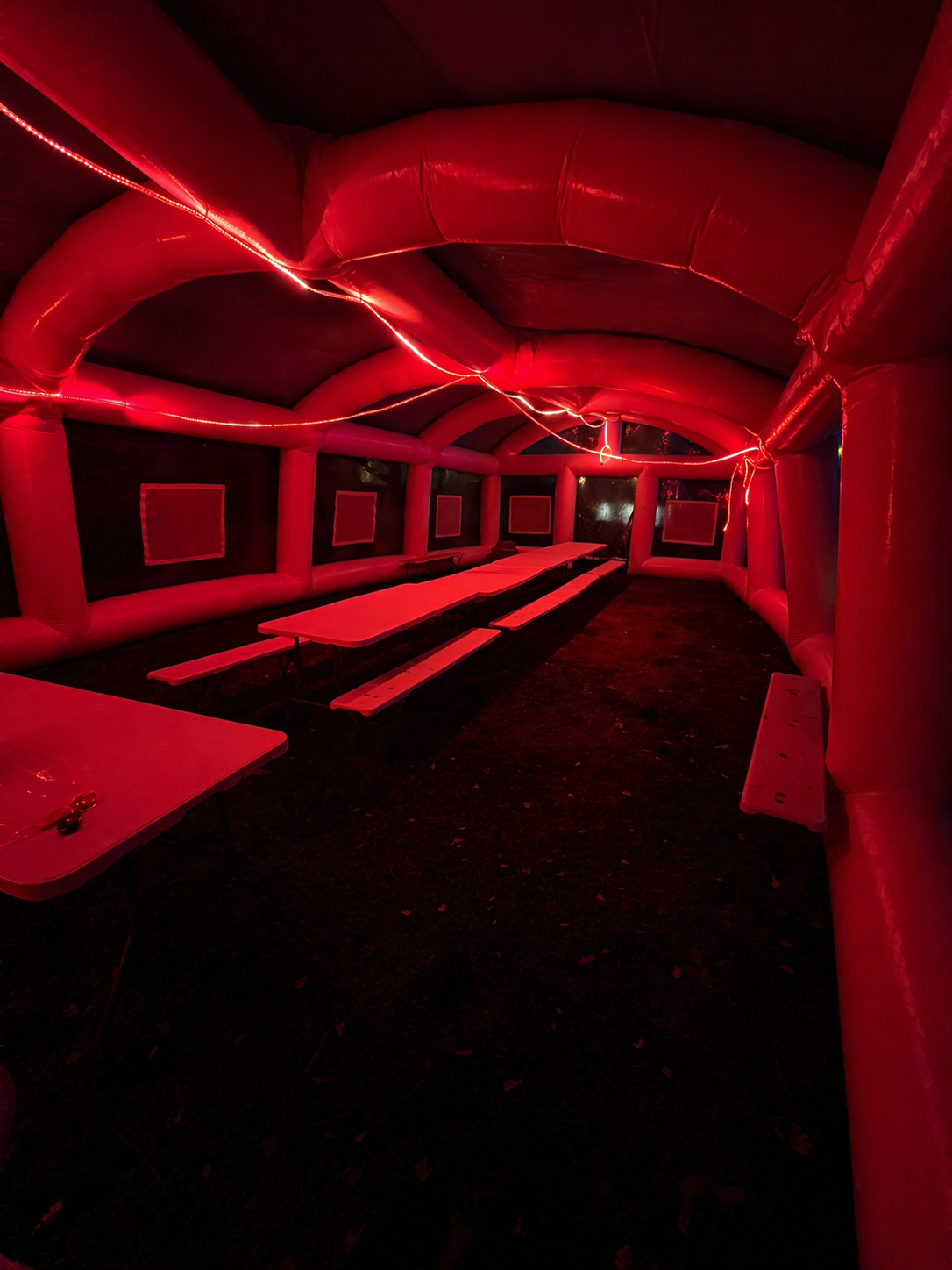 Vi har god erfaring med tradisjonelle partytelt, og vet hvor krevende det kan være med stenger, skruer og lange oppsett. Derfor tilbyr vi et moderne, oppblåsbart telt som gir deg en rask, stilren og stabil løsning – uten styr.